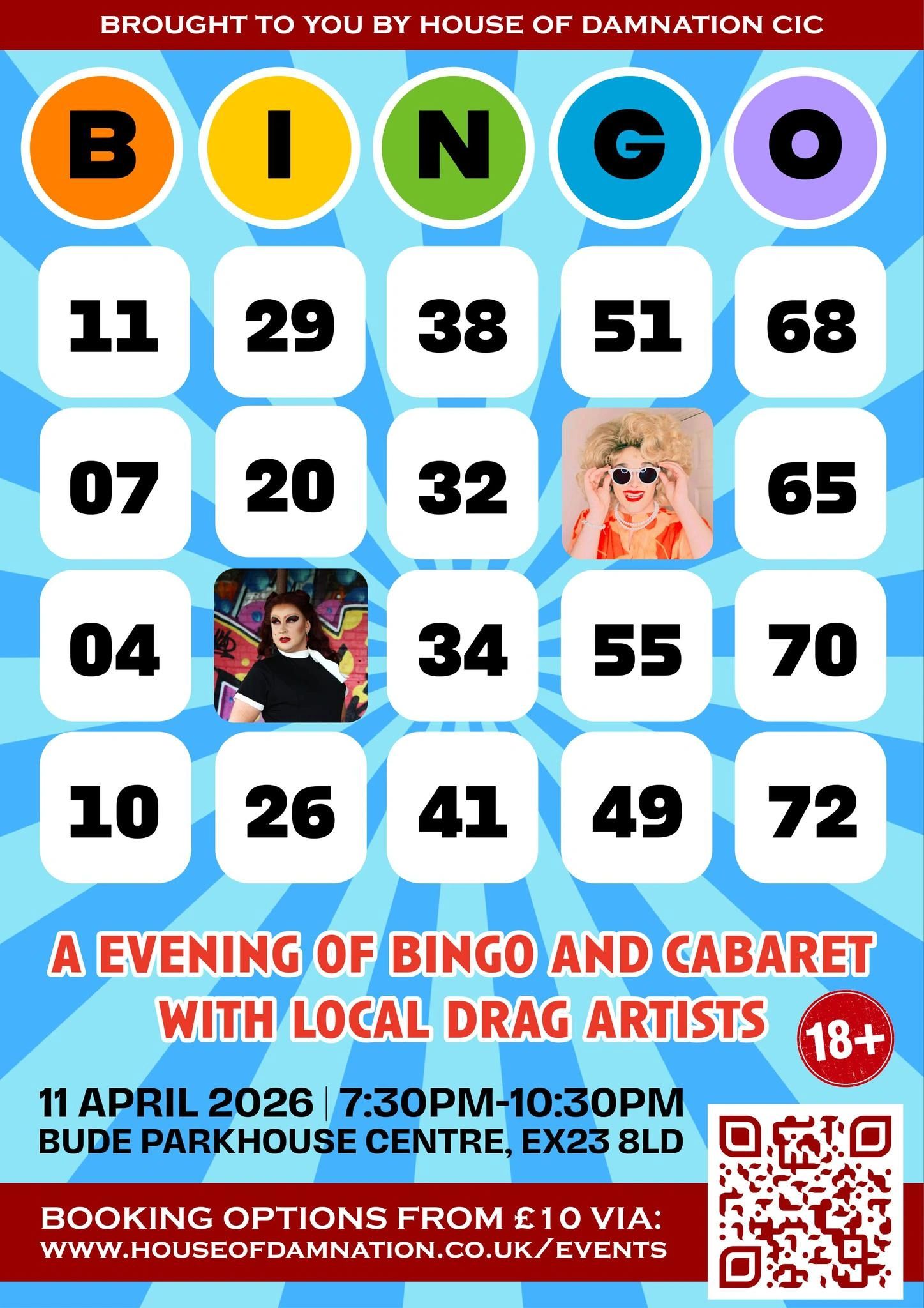 Join us for an evening of bingo, live cabaret and plenty of sparkle, featuring drag artists from House of Damnation, a Cornwall-based community interest company. This special one-off event is the first in a series of community projects designed to bring inclusive entertainment to towns across Cornwall. Expect classic bingo games, live performances, music you know and love, and a welcoming atmosphere where everyone can relax and have fun.